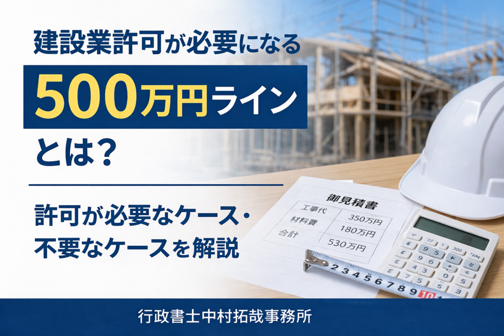 建設業を始めたばかりの方や、これから仕事を広げていきたい方の中には、 「うちは建設業許可が必要なのか分からない」 「500万円と聞いたことはあるけど、何を含めて判断するの?」 と悩む方が多いです。 実際、建設業許可が必要かどうかは、工事の内容や...